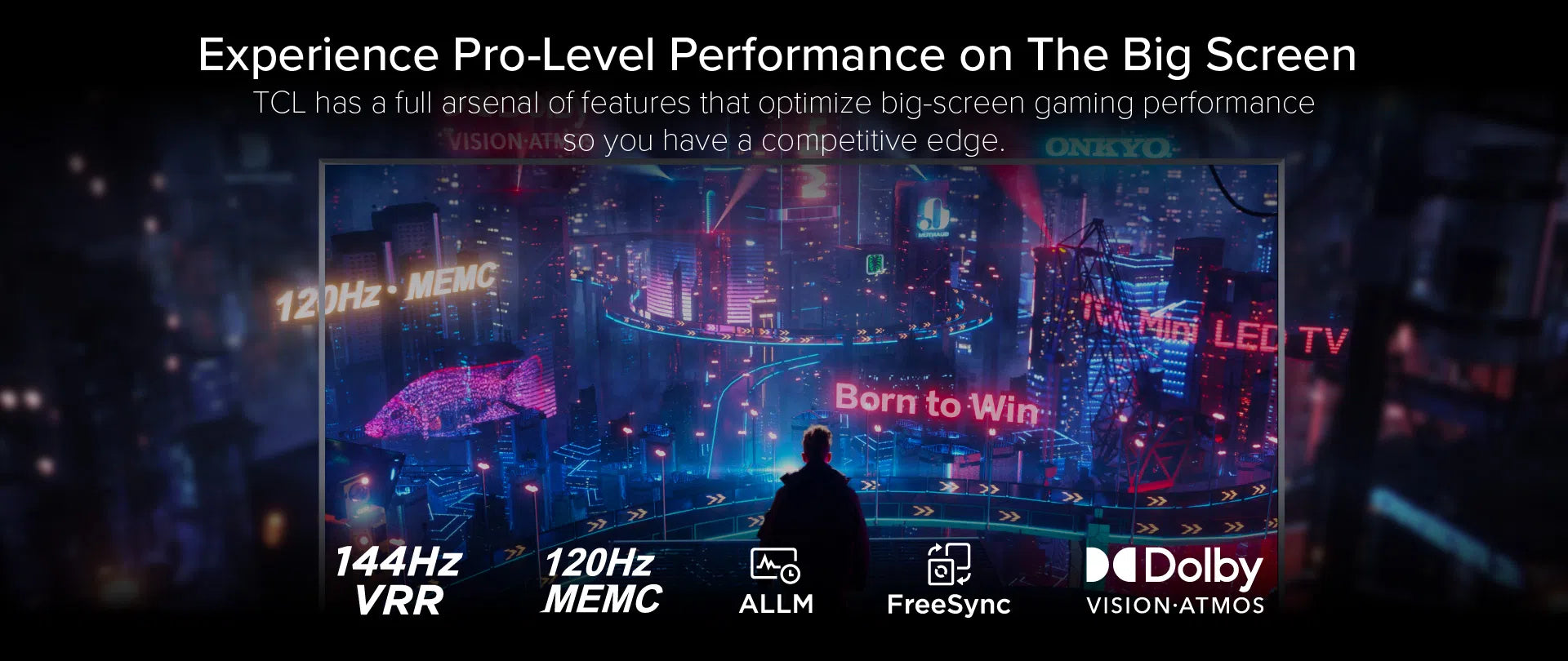 TCL TVs are certified with AMD FreeSync™ Premium1 technology that equips serious gamers with a fluid, tear-free gameplay experience at peak performance.