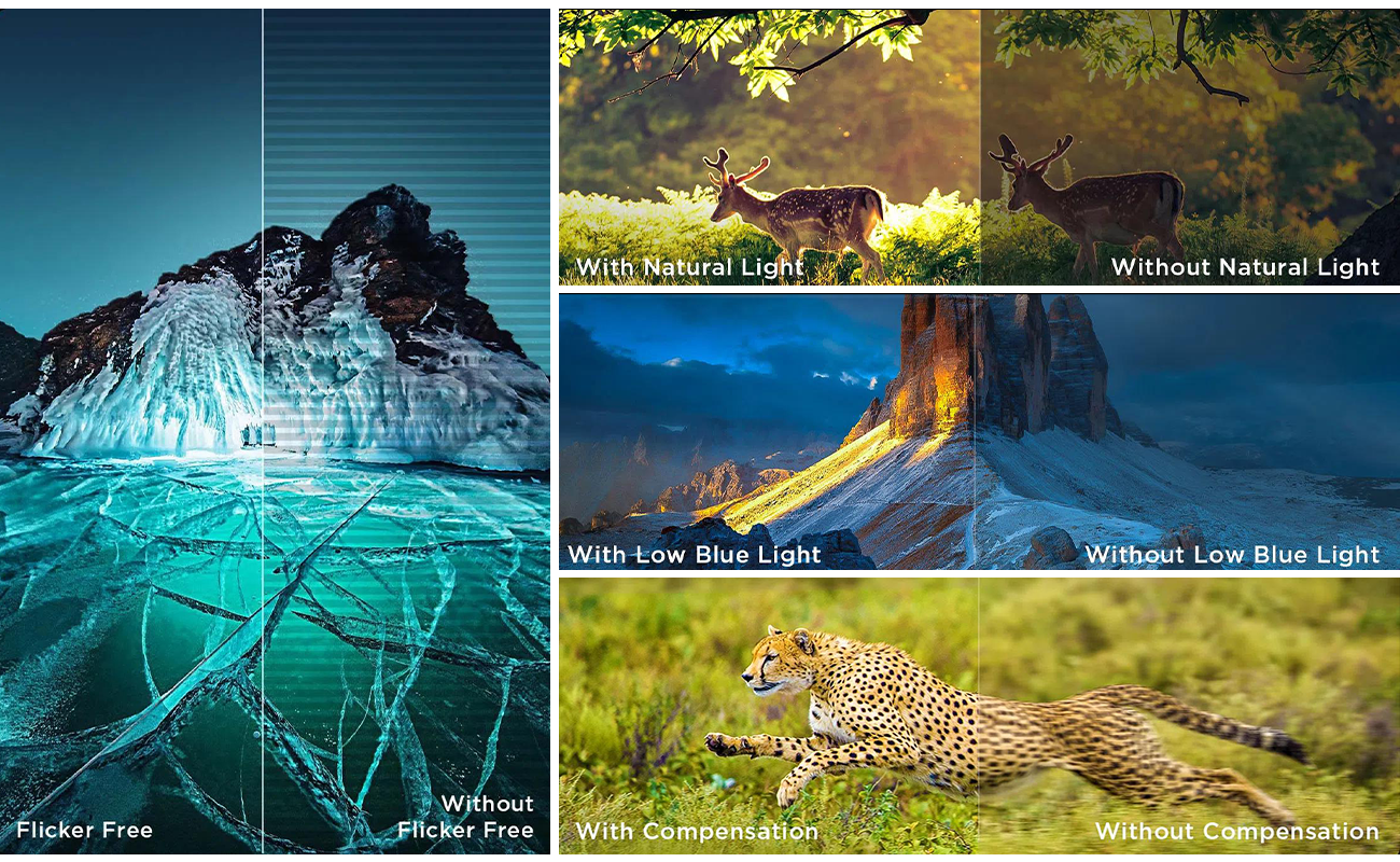 Ai Motion detects fast-moving objects sensitively, it calculates motion in terms of refresh rate and frame number, just to restore the silky-smooth image in compensating for blurring and tearing./p>