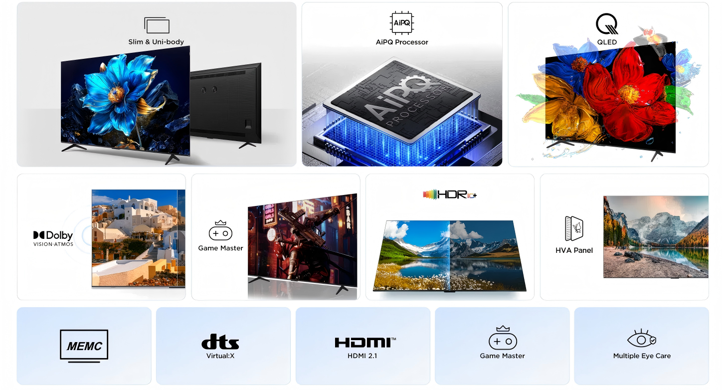 AiPQ Engine enabled TCL, algorithm processes contents with stable and high quality 4K, Meanwhie, game accelerator technology gives you a smoother gaming experience. Now, it's time to enjoy an authentic movie or game night.