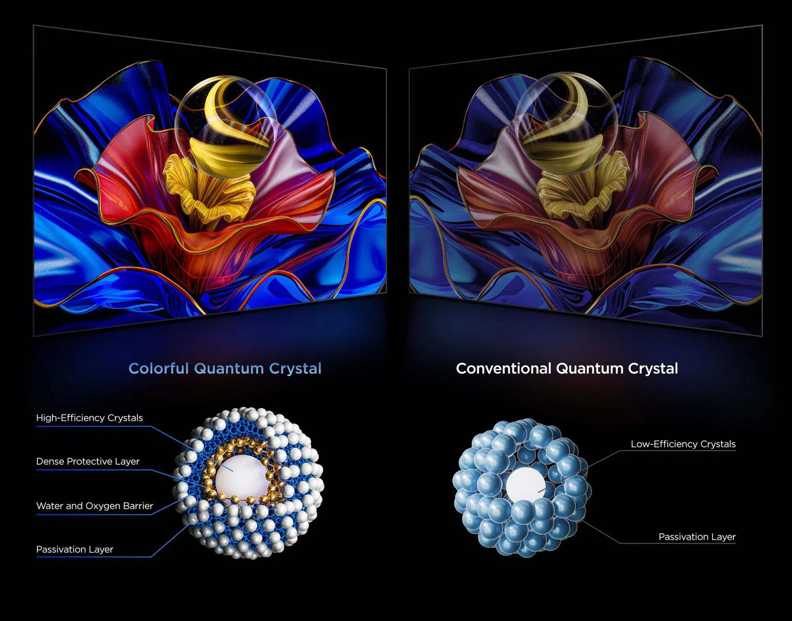 TCL QLED introduces the next-generation Colorful Quantum Crystal, featuring a more stable multi-layer nano-protection and precision crafting. This innovation delivers an extraordinary, long-lasting color experience with exceptional brilliance and depth.