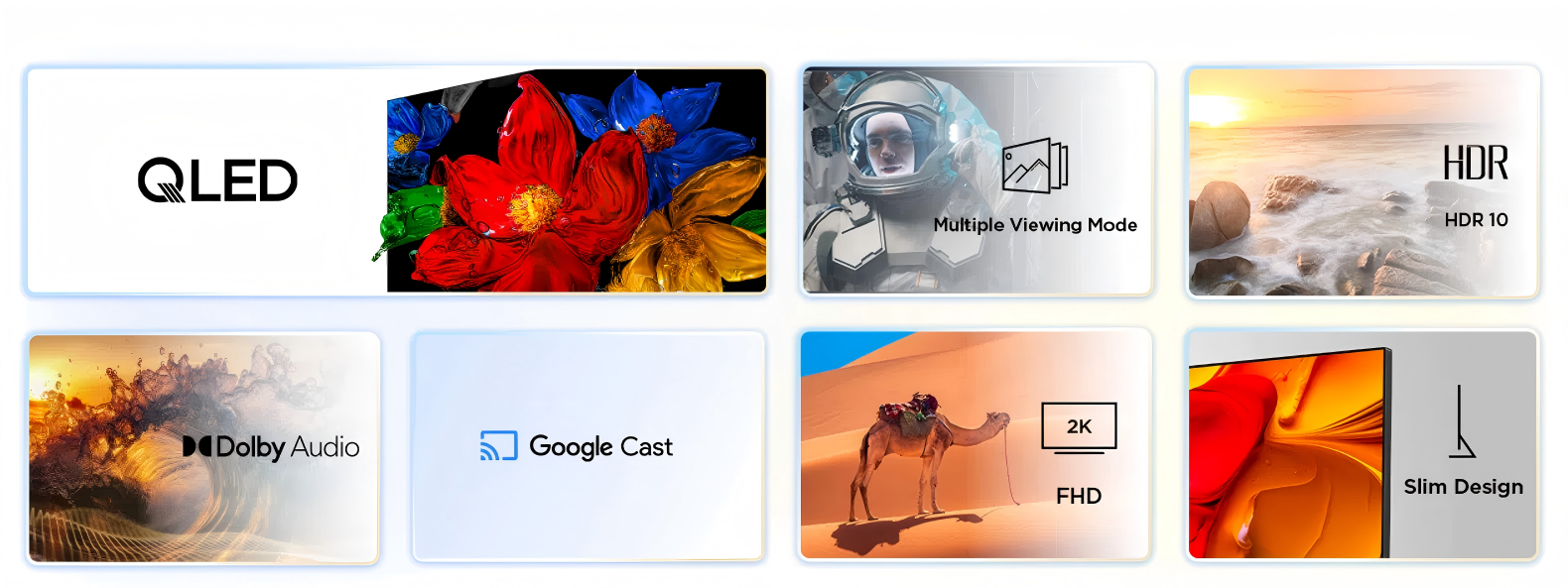 TCL QLED utilizes Colorful Quantum Crystals, which integrate nanoscale quantum dot materials with organic materials in multiple layers. Together with backlighting technology, this breakthrough achieves exceptional color and optical properties. Enhanced brightness further illuminates subtle details, delivering truly immersive, lifelike viewing experiences.