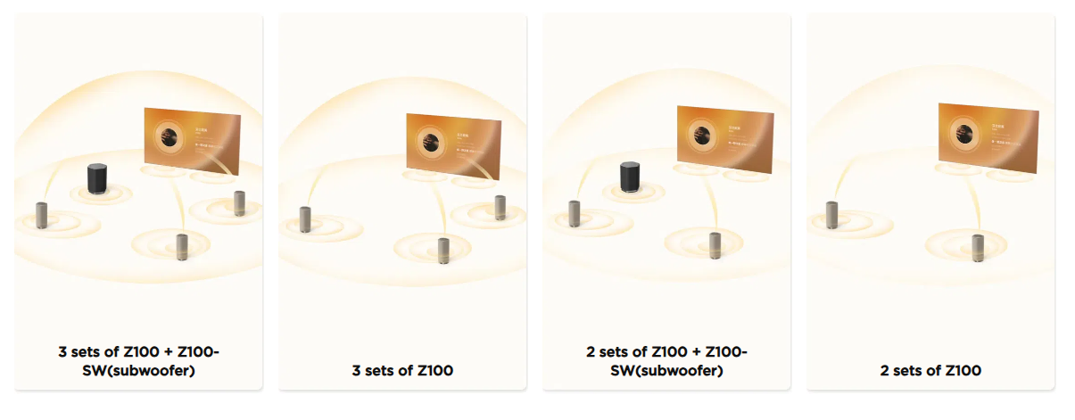 The product supports free combination of 1 to 4 speakers and is compatible with independent subwoofers, allowing for up to 8 unique combinations. Different colors can also be mixed and matched to meet individual preferences.
