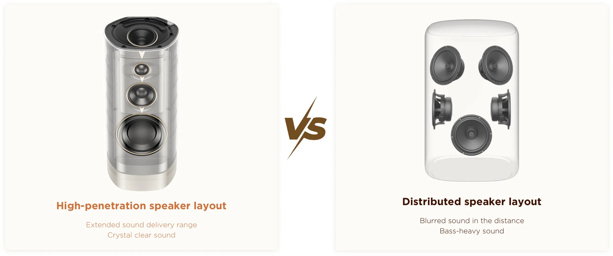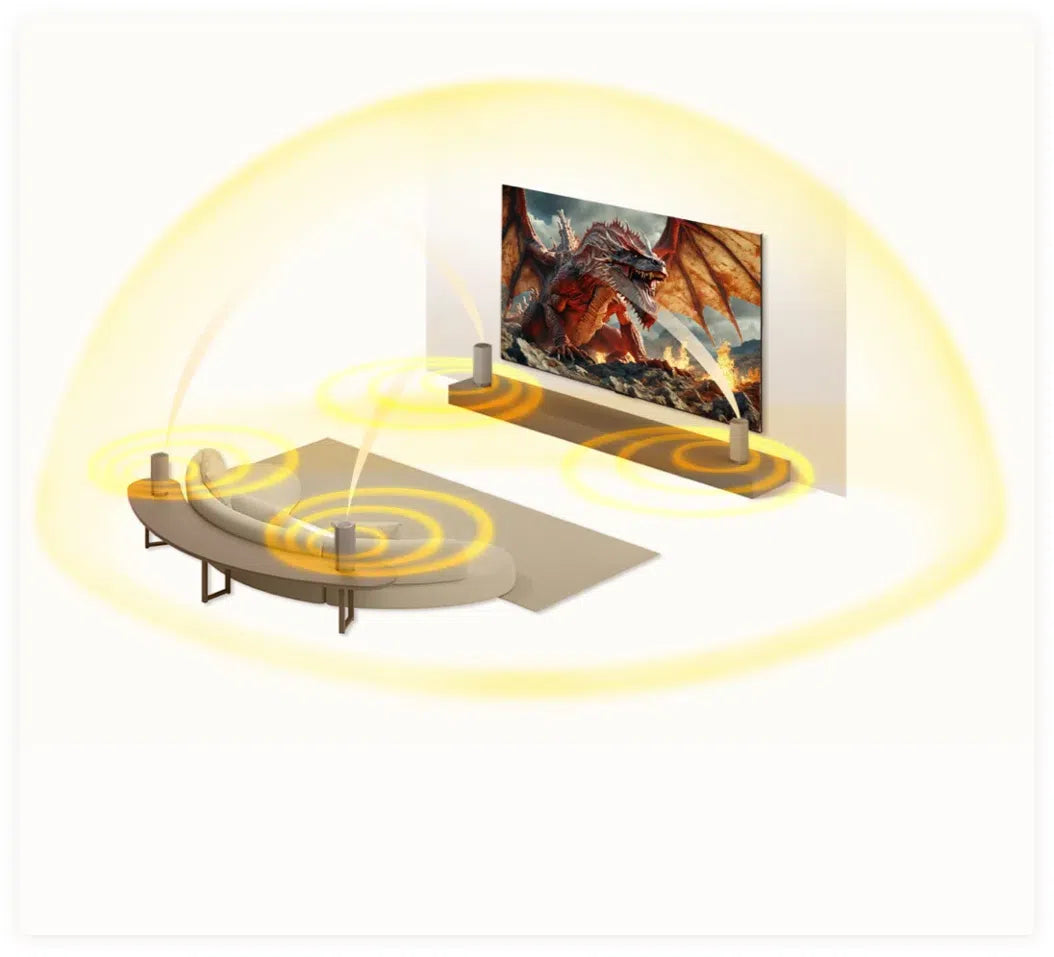 The optimized high-penetration speaker layout delivers crystal clear sound, allowing rich sound details and high-fidelity audio to be experienced from various positions.